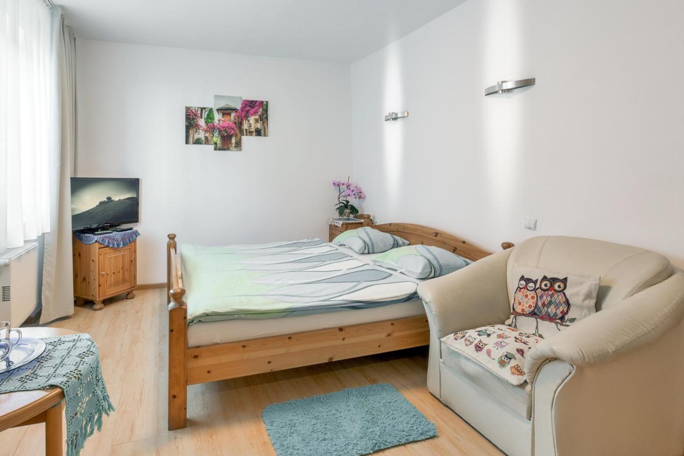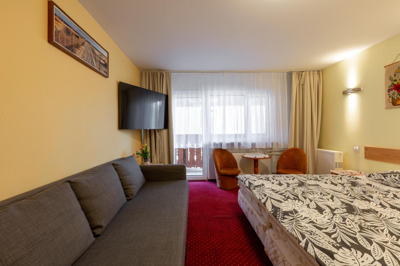 Pokój Dwuosobowy typu Deluxe. The well-equipped kitchenette has a stovetop, a refrigerator, kitchenware and a microwave. The double room offers a tea and coffee maker, a dining area, as well as a private bathroom boasting a shower and a hairdryer. The unit has 1 bed. Pokój Dwuosobowy - 3 osobowy. Powierzchnia pokoju ok.: 18 mkw.
