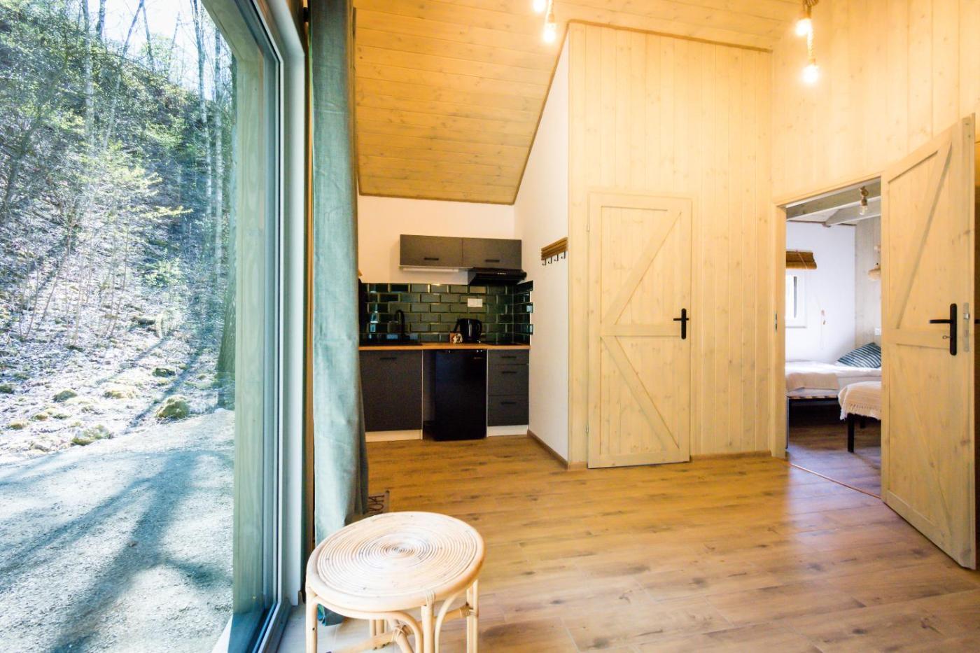 Dom z 2 sypialniami. Featuring a private entrance, this holiday home consists of 1 living room, 2 separate bedrooms and 1 bathroom with a shower and a hairdryer. In the well-equipped kitchenette, guests will find a stovetop, a refrigerator, kitchenware and a tea and coffee maker. Among the room amenities are a seating area, a wardrobe, a sofa as well as an outdoor dining area and garden views. The unit offers 4 beds. Dom wakacyjny - 6 osobowy. Powierzchnia pokoju ok.: 35 mkw. ;