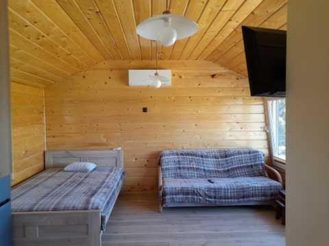 Domek. This chalet comprises 1 living room, 1 separate bedroom and 1 bathroom with a shower. The chalet features an electric kettle, outdoor furniture and lake views. The unit offers 4 beds. Domek - 4 osobowy.